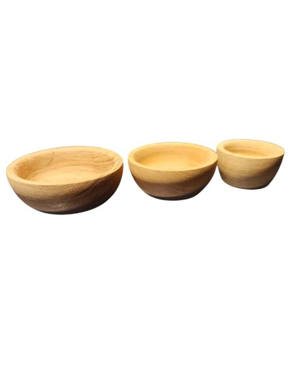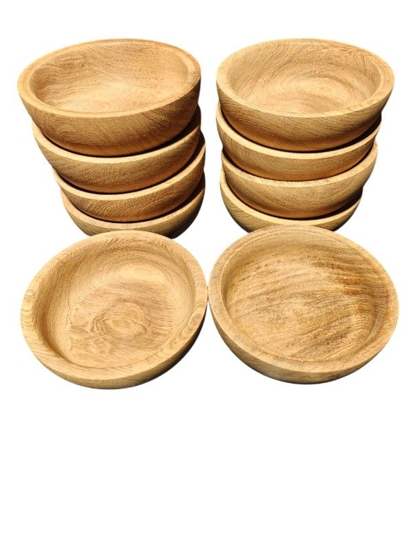 Cazuelas/Cuencos de algarrobo disponibles en 8 - 10 - 12 y 16 cm de diámetro exterior por 4 cm de altura.